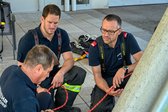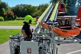 Am Nachmittag folgte der praktische Teil der Ausbildung. In mehreren Stationen übten die Teilnehmer unter realitätsnahen Bedingungen verschiedene Szenarien, etwa die Rettung aus LKW oder Arbeiten mit der Drehleiter. Für diese Station stand die Drehleiter der FF Nettingsdorf zur Verfügung. Unterstützt wurden sie dabei von geschulten Ausbildnern des FMD, die wertvolle Tipps zur richtigen Handhabung von Ausrüstung und zur Kommunikation im Ernstfall gaben.