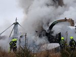 Bereits bei der Anfahrt war die Rauchsäule in der Nähe des Postverteilerzentrums zu sehen und am Funk hörte man die Feuerwehr Allhaming weitere Feuerwehren alarmieren.
